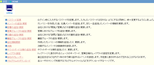■レイアウト設定:トップページや営業日報などのレイアウトの設定をします。